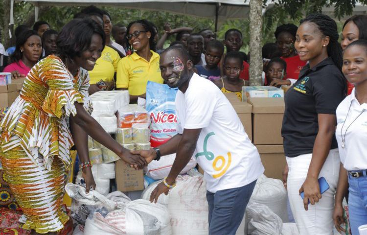 1. Donation of food items (bags of maize, rice, beans, gari, sugar, etc), confectioneries, baby foods, diapers, and toiletries.